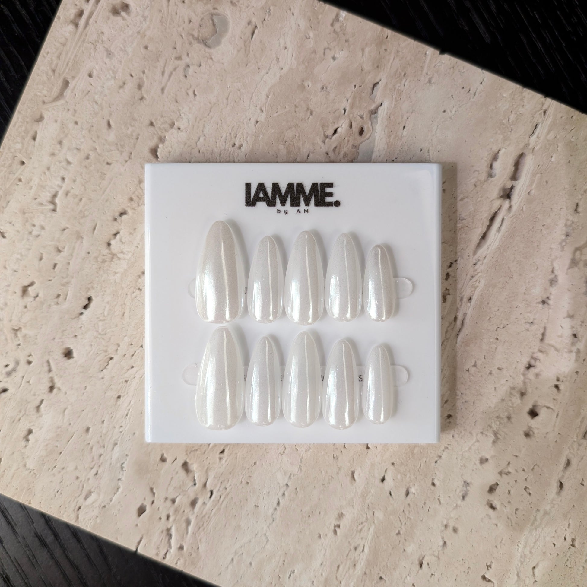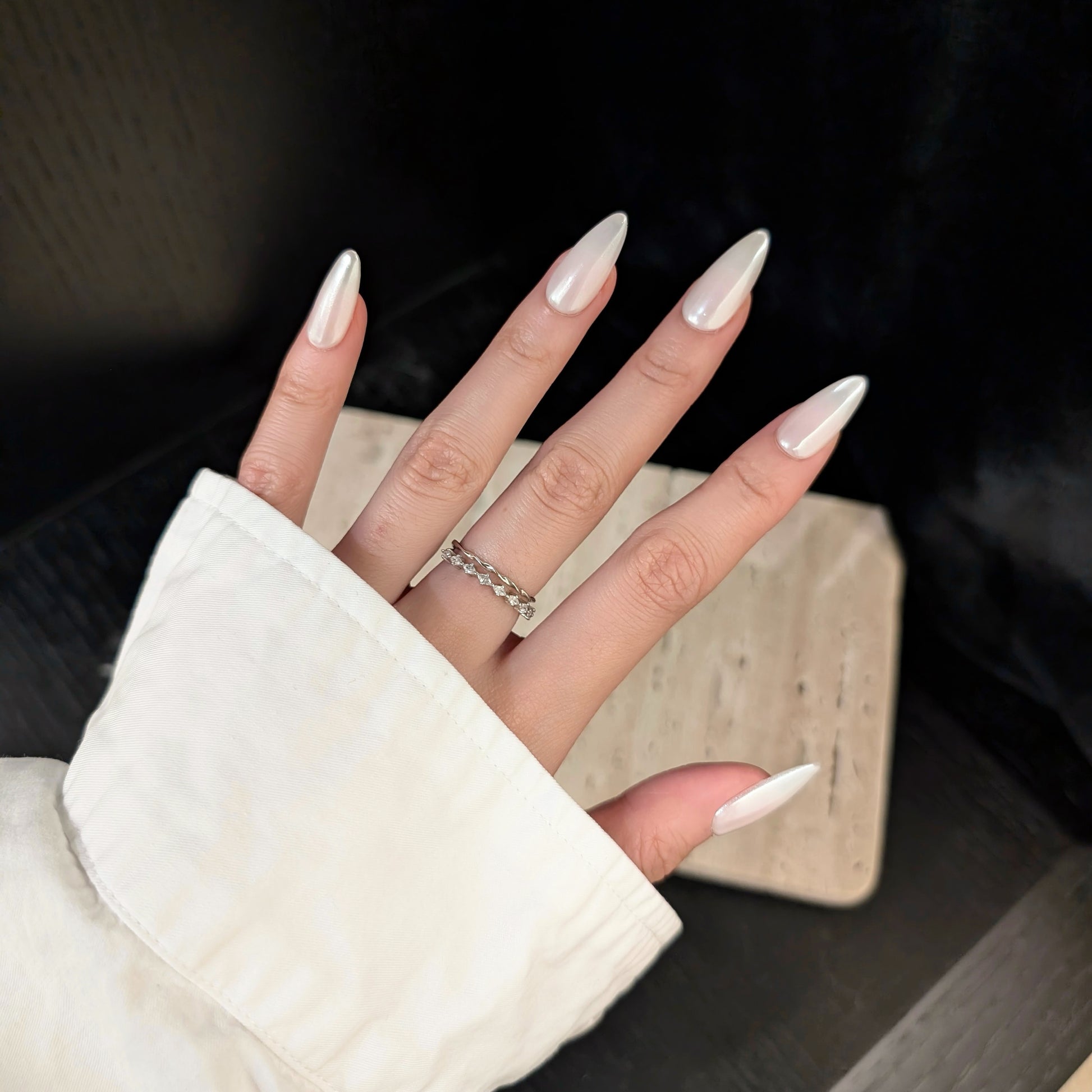 Indulge in the ultimate sweet treat with Glazed Donut. These glossy, pearly-white nails are inspired by the delicious sheen of a freshly glazed donut, creating a shimmery twist to the classic white nail. The sleek, smooth finish catches the light beautifully, giving a luminous look that goes well with any outfit!